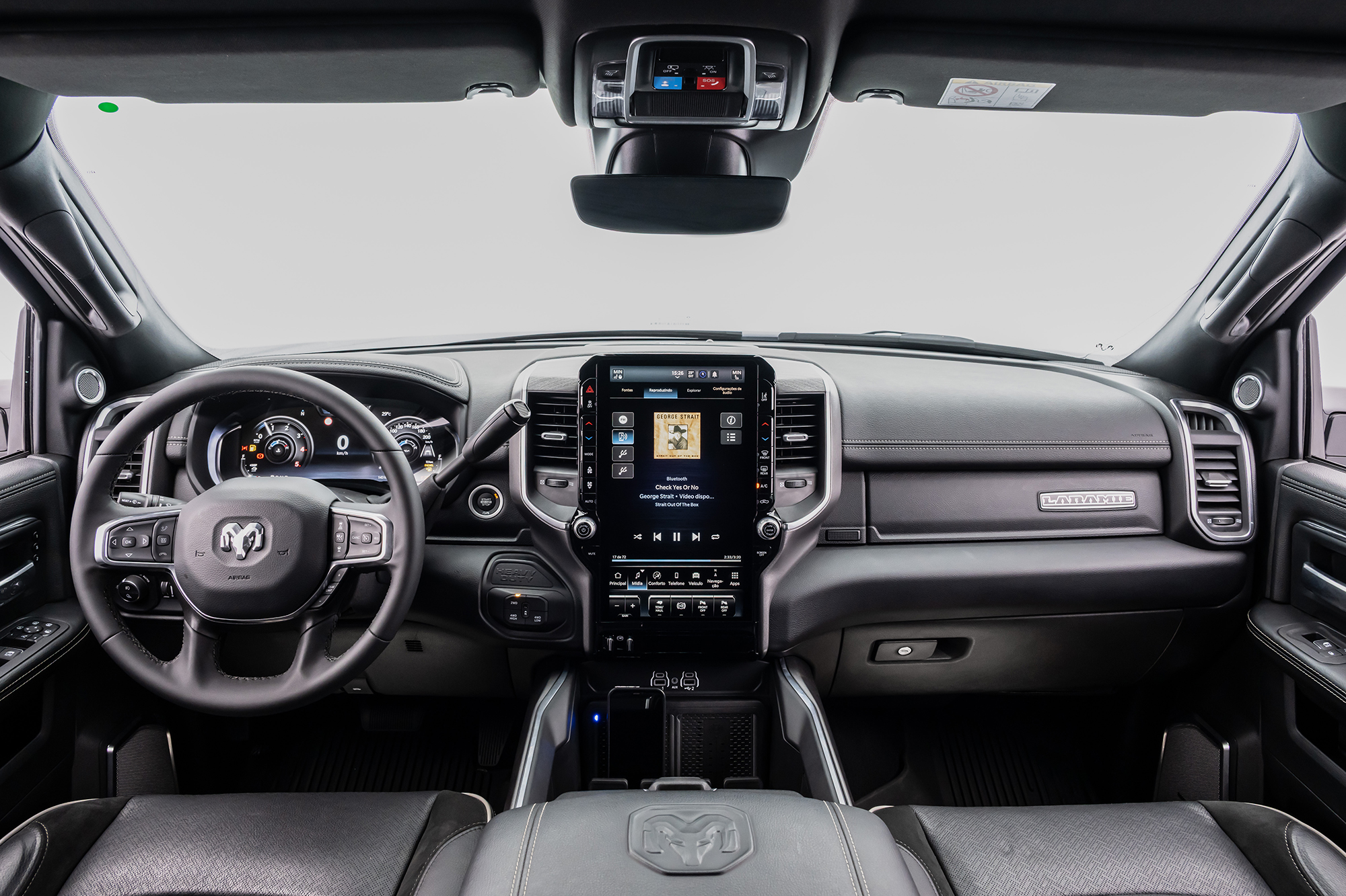 A cabine das novas Heavy Duty reforça o foco em conforto e tecnologia. Entre os destaques, painel digital customizável de 12,3”, assistentes de condução semiautônoma (ADAS), e, na 3500, uma central multimídia de 14,5” — a maior entre as picapes no Brasil. Há ainda sistema de câmeras 360°, conexão Ram Connect com Wi-Fi para até 8 dispositivos, carregadores sem fio por indução e até dez entradas USB. O isolamento acústico é reforçado e, na 3500, um sistema Harman/Kardon® de 16 alto-falantes com subwoofer eleva a experiência sonora.