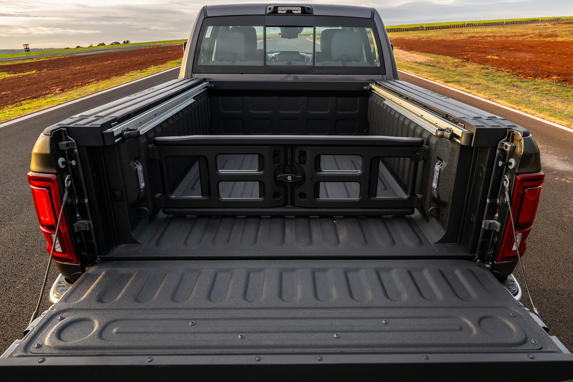 Versatilidade também é marca registrada. As Heavy Duty trazem os exclusivos Rambox®, compartimentos laterais na caçamba com 244 litros de capacidade, vedados, iluminados e à prova d’água. O acesso à caçamba é facilitado por degrau retrátil e tampa com abertura elétrica remota. Na cabine, há porta-objetos ocultos, bancos traseiros aquecidos e rebatíveis, e plataforma interna para transporte de cargas.