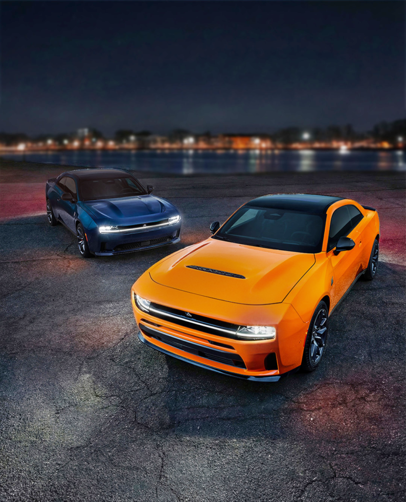 Dodge Daytona (azul) e Scat Pack: elétrico e combustão