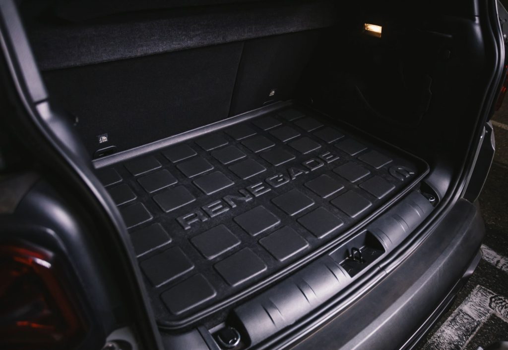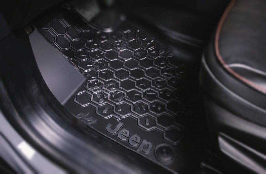 Internamente, o conceito mantém o foco na funcionalidade e no estilo, com tapetes de alta proteção e projetor de logo Jeep nas portas, reforçando a experiência do usuário.