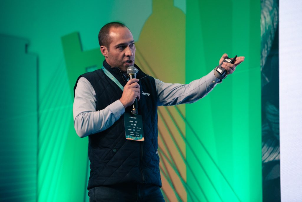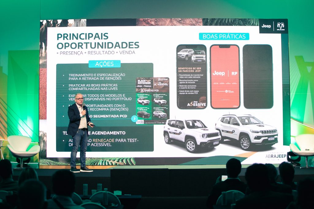 Ao abrir sua apresentação de forma descontraída, o executivo ressaltou o dinamismo da área comercial e o impacto positivo da capacidade da Jeep de se comunicar, ousar e gerar engajamento com o público, fortalecendo a conexão com os consumidores.